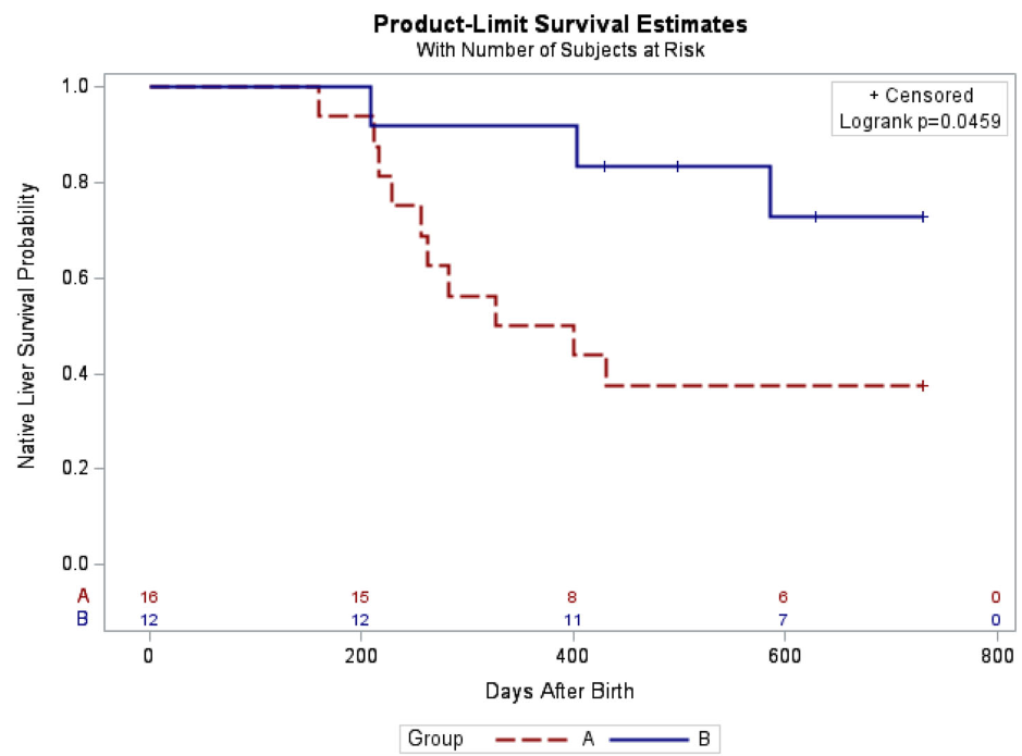 - The 2-year NLS was also significantly higher in Group B (72.9% vs. 37.5%, p = 0.046)