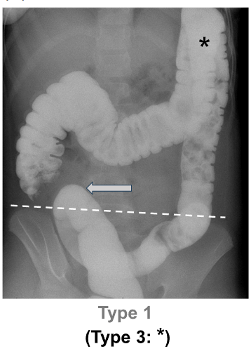 “DC was defined as: any portion of the sigmoid colon reaching above the iliac crest line (Type 1), and/or any portion of the transverse colon reaching below the iliac crestline with or without redundant flexures (Type 2)…We decided not to study Type 3 DC (i.e., redundant loops at the hepatic or splenic flexure, example shown in Figure 1A*) separately because that category was deemed to be arbitrary/imprecise.”