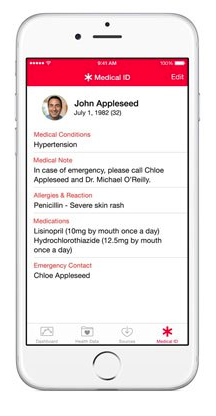 One feature of the health app is that it allows you to store emergency contact information and health information that’s accessible from your device’s Lock screen. First responders or good Samaritans will be able to call the emergency contacts listed in Medical ID. This health app also can function as an activity tracker.