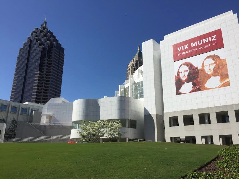 Poster on Front of High Museum is reproduction of Vik Muniz piece created from Jelly and Peanut Butter