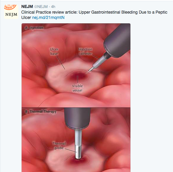 Several years ago, this blog provided a summary of the guidelines for stopping upper gastrointestinal bleeding (All bleeding stops | gutsandgrowth). Most of the recommendations are unchanged. A nice review of this topic (L Laine. NEJM 2016; 374: 2367-76), specifically focused on peptic ulcers, provides a few new pointers.