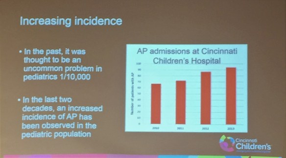 Our group received a very helpful update on pancreatitis from Maisam Abu-El-Haija (GI) and Jaime Nathan (surgery). My notes may include some errors in transcription and errors of omission. Some pictures of the slides are included below as well.