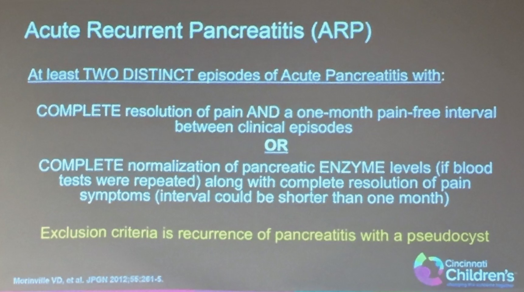 Our group received a very helpful update on pancreatitis from Maisam Abu-El-Haija (GI) and Jaime Nathan (surgery). My notes may include some errors in transcription and errors of omission. Some pictures of the slides are included below as well.