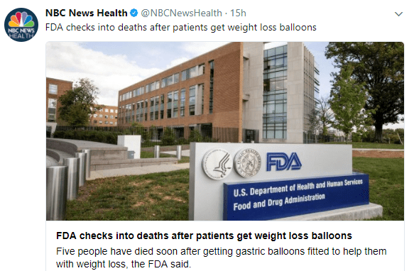 FDA Warning: Five Die While Using Obesity Devices (Intragastric Balloons)