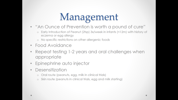 Dr. Patel did discuss the LEAP study and the LEAP-ON study which overall indicate that early antigen introduction is likely to reduce food allergies. Related blog posts: