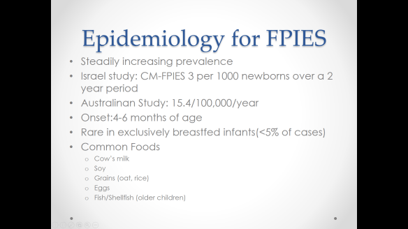 The next few slides review Food Protein-Induced Enterocolitis Syndrome. Related blog posts: