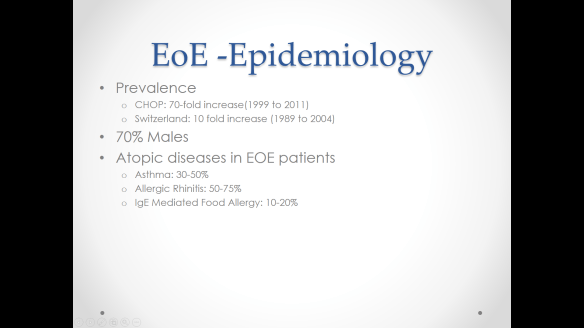 The next few slides discuss eosinophilic esophagitis (EoE). Allergy testing has not been very helpful in most patients with EoE. Related blog posts: