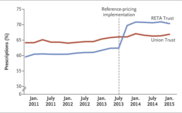 A recent study (JC Robinson et al. NEJM 2017; 377: 658-65) examined the topic of “reference pricing” and how this could be used to lower costs of medication usage.