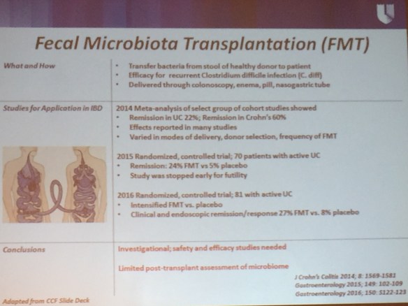 Our local CCFA chapter provided a useful physician CME meeting. The following are my notes/picutres. My notes may include some errors in transcription and errors of omission.