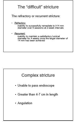 - Fluoroscopy very useful with most strictures –may improve safety and effectiveness. Helps define anatomy
