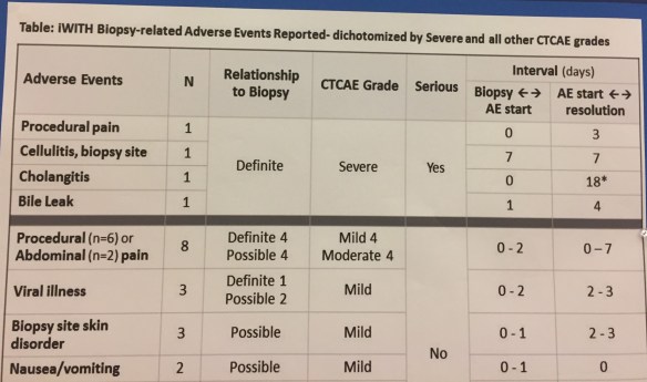This study that follows (next two pics) documented the relative safety of liver biopsies (mainly percutaneous without interventional radiology) in the post-transplant period. The two most serious adverse events, cholangitis and bile leak, helped identify biliary strictures.