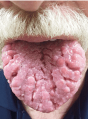 NEJM 2017; 377: e22. In this patient with lingual papillomas, hx/o melenoma, and both hyperplastic and adenomatous polyps, a genetic mutation identifying Cowden syndrome was identified.
