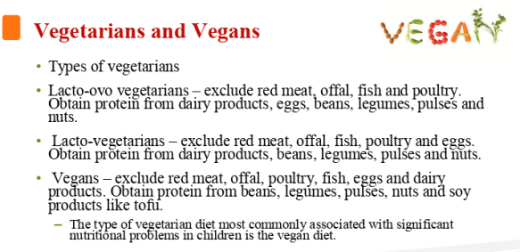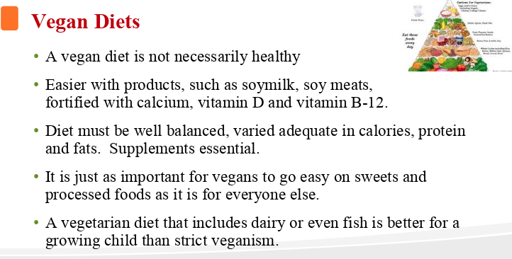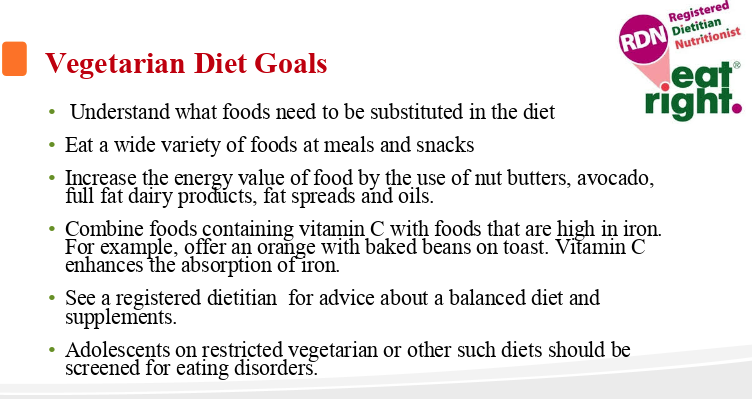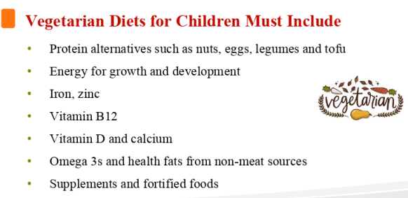 - There have been more individuals pursuing vegetarian and vegan diets. Though increasing vegetables/fruits is a good trend, vegan diets are particularly challenging (& potentially dangerous) in children. In those who take milk and eggs, this diet is much more likely to meet nutrient needs. These diets necessitate the assistance of a dietician.