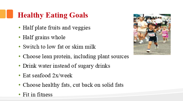 - Encourage families to eat together and to shop for a ‘rainbow of colors’