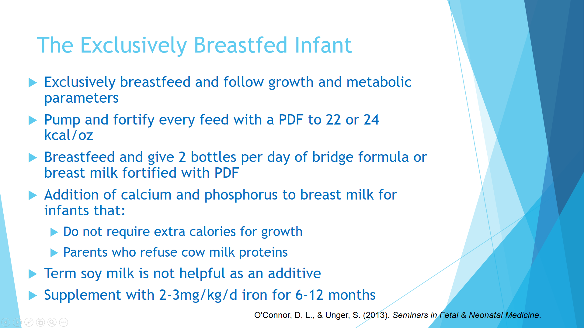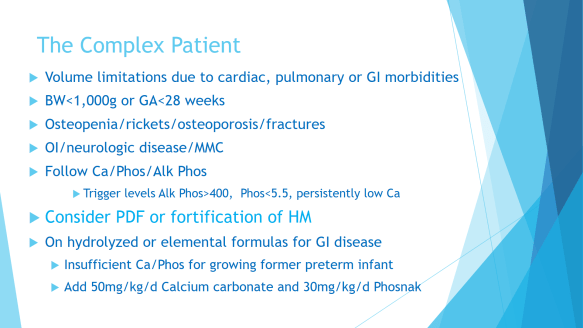 - Breastmilk is best at reducing sepsis, necrotizing enterocoliitis, and improving IQ. However, it is not perfect –less protein, less calcium, and less phosphorus than formulas; thus, breastmilk needs to be augmented and/or supplemented.