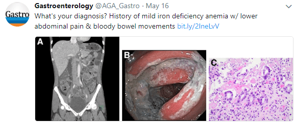 A brief report (RS Robinson et al. Gastroenterol 2018; 154: 1582-83) presents a case of a 28 year old, who had been in training for a marathon, with mild iron deficiency anemia, lower abdominal pain, and bloody bowel movements. The CT scan and colonoscopy showed diffuse colonic/ileal inflammation; the histology showed mucosal necrosis, crypt atrophy and acute inflammation (see below).