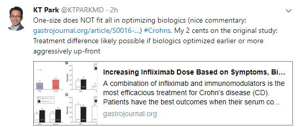 A recent commentary on therapeutic drug monitoring (from KT Park Twitter Feed): Therapeutic Targets in IBD