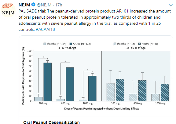 Link to abstract: AR101 Oral Immunotherapy for Peanut Allergy