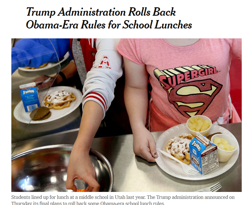 NY Times: Trump Administration Rolls Back Obama-Era Rules for School Lunches