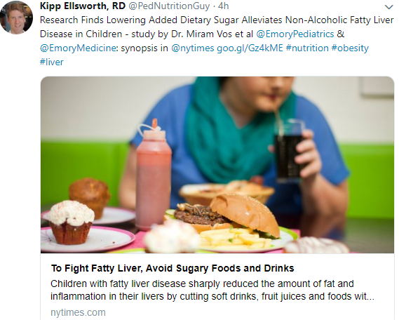 A recent randomized study (Jeffrey B. Schwimmer, MD1,2; Patricia Ugalde-Nicalo, MD1; Jean A. Welsh, PhD, MPH, RN3,4,5; et al examined the beneficial effects of a low free sugar diet for Nonalcoholic Fatty Liver Disease (NAFLD) in adolescent boys. Congratulations to the authors, particularly to Miriam Vos (my Emory colleague & corresponding author) and Jeffrey Schwimmer (whose training overlapped with mine in Cincinnati).