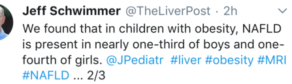 According to a recent study (EL Yu et al. J Pediatr 2019; 207: 64-70), about one-third of boys and one-fourth of girls with obesity have nonalcoholic fatty liver disease (NAFLD).