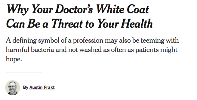 A recent NYT story: Why Your Doctor’s White Coat Can Be a Threat to Your Health
