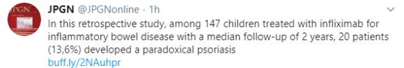 O Courbette et al. JPGN 2019; 69: 189-93. Infliximab Paradoxical Psoriasis in a Cohort of Children With Inflammatory Bowel Disease