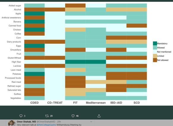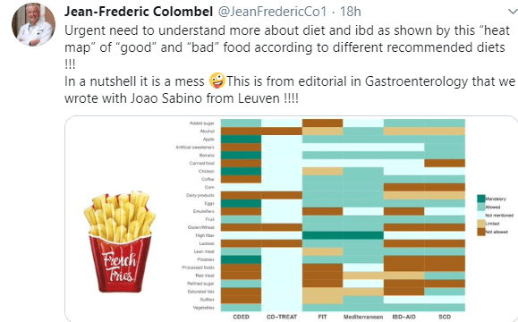 As noted in a previous blog (IBD Briefs August 2019), there have been numerous diets proposed to help with Crohn’s disease. The chart below illustrates the lack of any consensus.