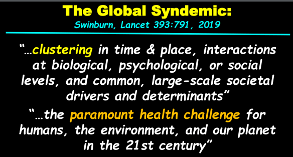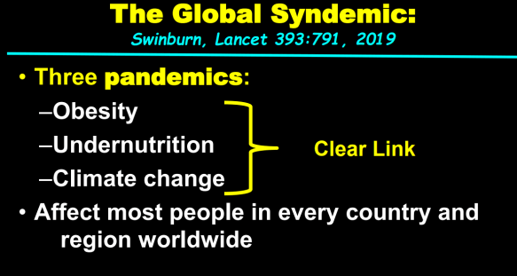 - LANCET Commission on Global Syndemic (Obesity, Undernuturition, and Climate Change)