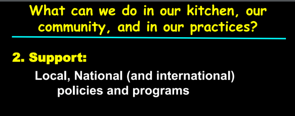 A recent book (not discussed in lecture) provides related information. “We Are The Weather” by Jonathan Foer, was reviewed this past weekend in the NY Times: Meat is Murder: “[This book] has a point, and that is to persuade us to eat fewer animal products. Foer makes the case that, for Americans and citizens of other voracious meat-eating countries, this is the most important individual change we can make to reduce our carbon footprints.” However, the reviewer, Mark Bittman, states that “we’re not good at making positive decisions about our future. And we’re really not good at denying ourselves cheap pleasures like cheeseburgers.” He advocates for stronger laws, government leadership, and pricing the products to account for their true costs in terms of their contributions to climate change, public health, and environmental degradation.