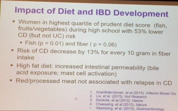 This was a terrific lecture –though much of the topic has been reviewed recently in this blog: Dietary Therapy for Inflammatory Bowel Disease.