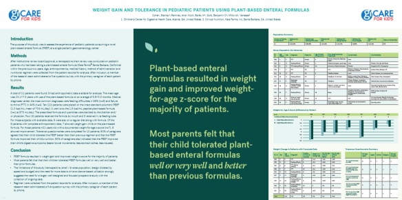 Enteral nutrition –poster from our group describing good tolerance of plant-based formula (with Ana Ramirez).