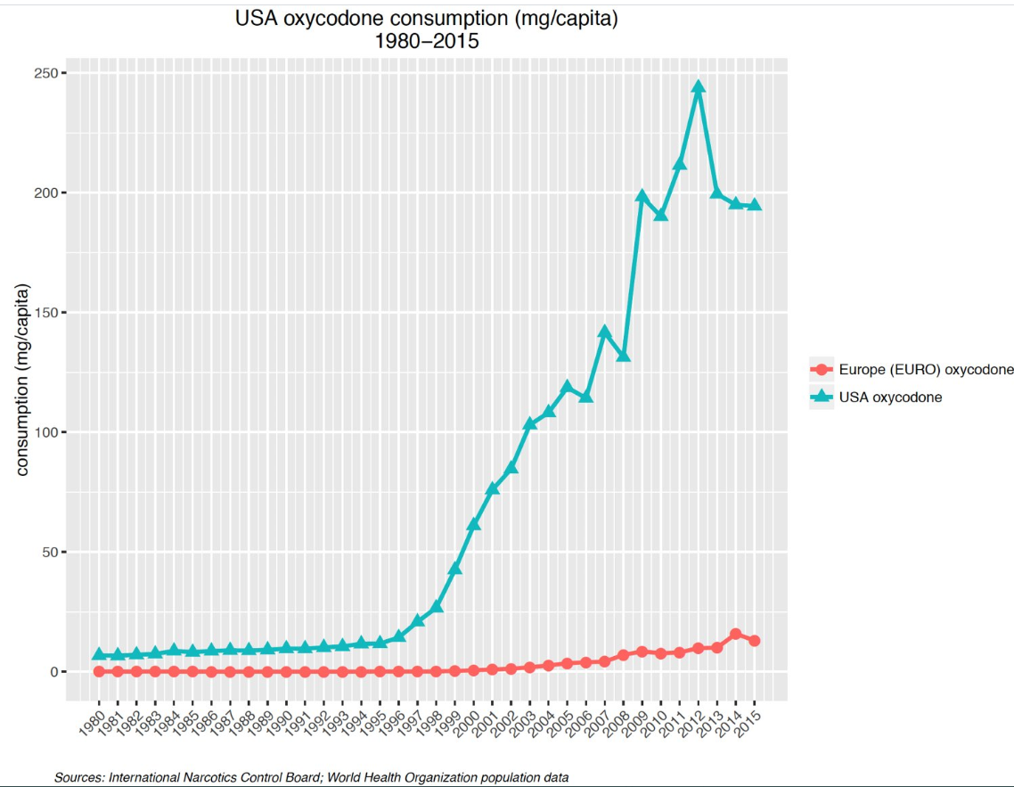Graphic: Oxycodone Consumption U.S vs. Europe Posted on January 25, 2020 by gutsandgrowth Share this: Click to email a link to a friend (Opens in new window) Email Click to share on X (Opens in new window) X Click to share on Facebook (Opens in new window) Facebook Like Loading... Related