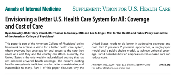Link: The American College of Physician’s Endorsement of Single-Payor Reform