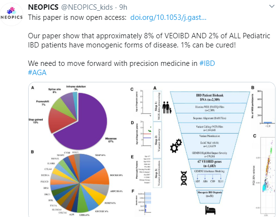 Link to text of accepted study (Gastroenterology, ahead of publication): Prevalence and Clinical Features of Inflammatory Bowel Diseases Associated with Monogenic Variants, Identified by Whole-exome Sequencing in 1000 Children at a Single Center
