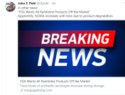 | The U.S. Food and Drug Administration today announced it is requesting manufacturers withdraw all prescription and over-the-counter (OTC) ranitidine drugs from the market immediately. This is the latest step in an ongoing investigation of a contaminant known as N-Nitrosodimethylamine (NDMA) in ranitidine medications (commonly known by the brand name Zantac). The agency has determined that the impurity in some ranitidine products increases over time and when stored at higher than room temperatures and may result in consumer exposure to unacceptable levels of this impurity. As a result of this immediate market withdrawal request, ranitidine products will not be available for new or existing prescriptions or OTC use in the U.S.