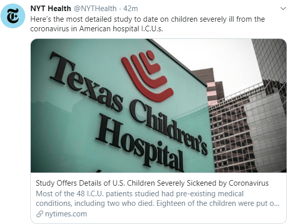 NY Times Summary of Study: Details of U.S. Children Severely Affected by Coronavirus