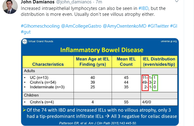One trend lately has been the use of twitter for virtual lectures (ACG Free Virtual Grand Round Lectures). A recent example from ACG highlighted Celiac disease. Reviewed topics included seronegative celiac disease as well as other conditions that can create similar histology findings.
