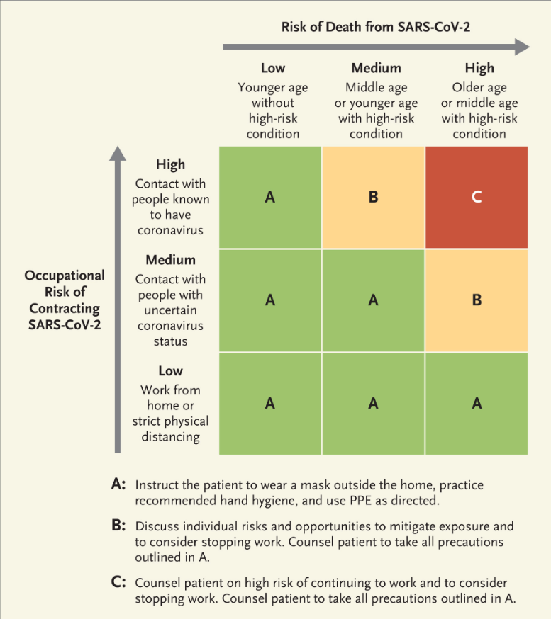 Full text —MR Larochelle. DOI: 10.1056/NEJMp2013413. NEJM: Is It Safe for Me to Go to Work?