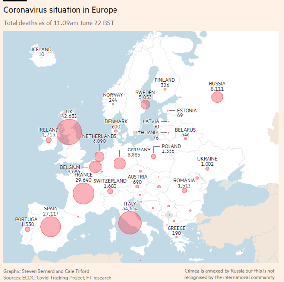 In Europe which had at one point accounted for ~80% of new infections, the daily toll is ~10%. From Financial Times website: