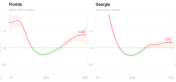 These are up-to-date values for Rt, a key measure of how fast the virus is growing. It’s the average number of people who become infected by an infectious person. If Rt is above 1.0, the virus will spread quickly. When Rt is below 1.0, the virus will stop spreading. All 50 states listed below (but hard to see) -these numbers adjust for testing frequency: