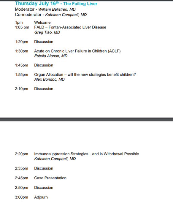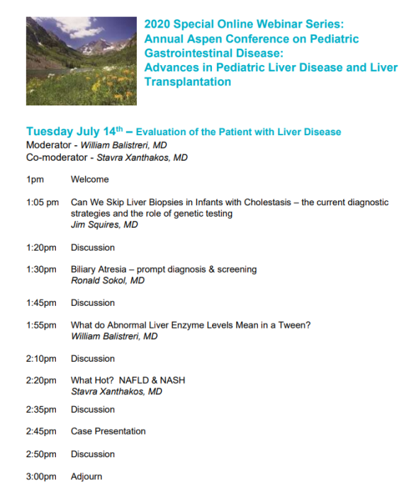 - Link to home page for conference: Annual Aspen Conference on Pediatric Gastrointestinal Disease: Advances in Pediatric Liver Disease and Liver Transplantation