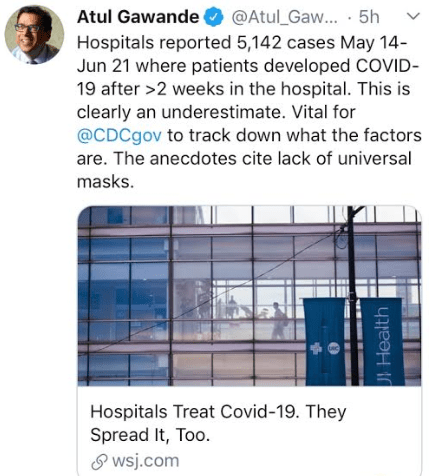 Also, an interesting Wall Street Journal Article (Behind Paywall): Hospitals Struggle to Contain Covid-19 Spread Inside Their Walls