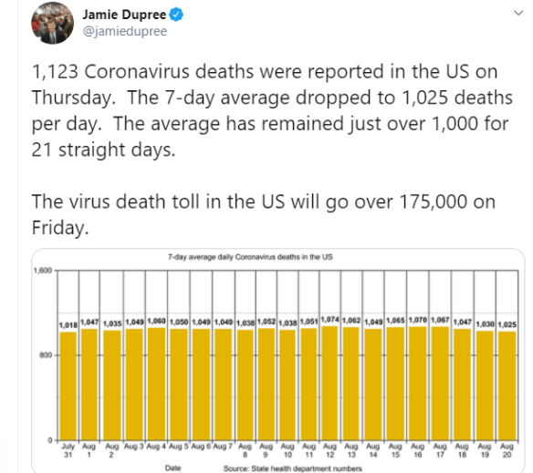 COVID-19 -More Statistics Posted on August 21, 2020 by gutsandgrowth Share this: Click to email a link to a friend (Opens in new window) Email Click to share on X (Opens in new window) X Click to share on Facebook (Opens in new window) Facebook Like Loading... Related
