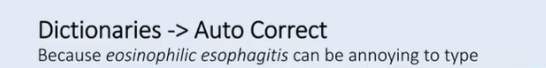 - Using Dictionary, users can change autocorrect: example: if you type EoE, you could have it modified to Eosinophilic Esophagitis