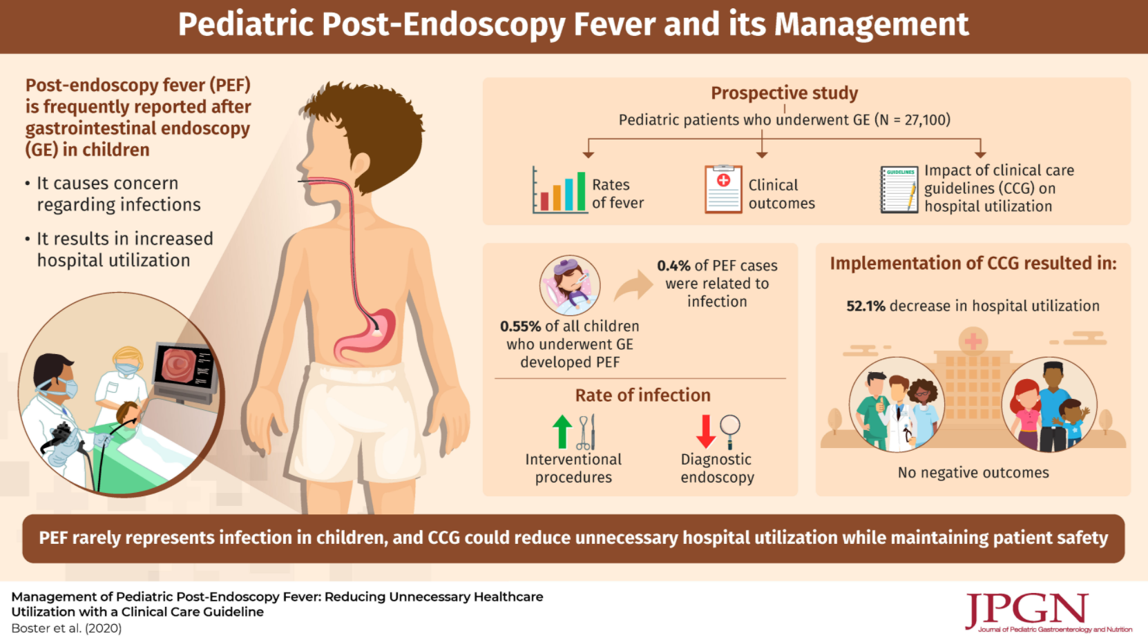 A recent study (JM Boster, M Iwanowski, RE Kramer. JPGN 2021; 72: 250-254. Management of Pediatric Postendoscopy Fever: Reducing Unnecessary Health Care Utilization With a Clinical Care Guideline) provides clear guidance for how to handle post-procedure fevers.