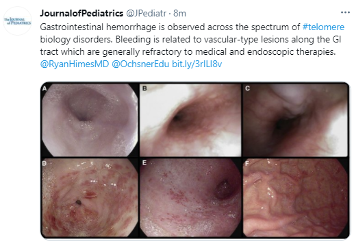 RW Himes et al. J Pediatr 2021; 230: 55-61. Gastrointestinal Hemorrhage: A Manifestation of the Telomere Biology Disorders