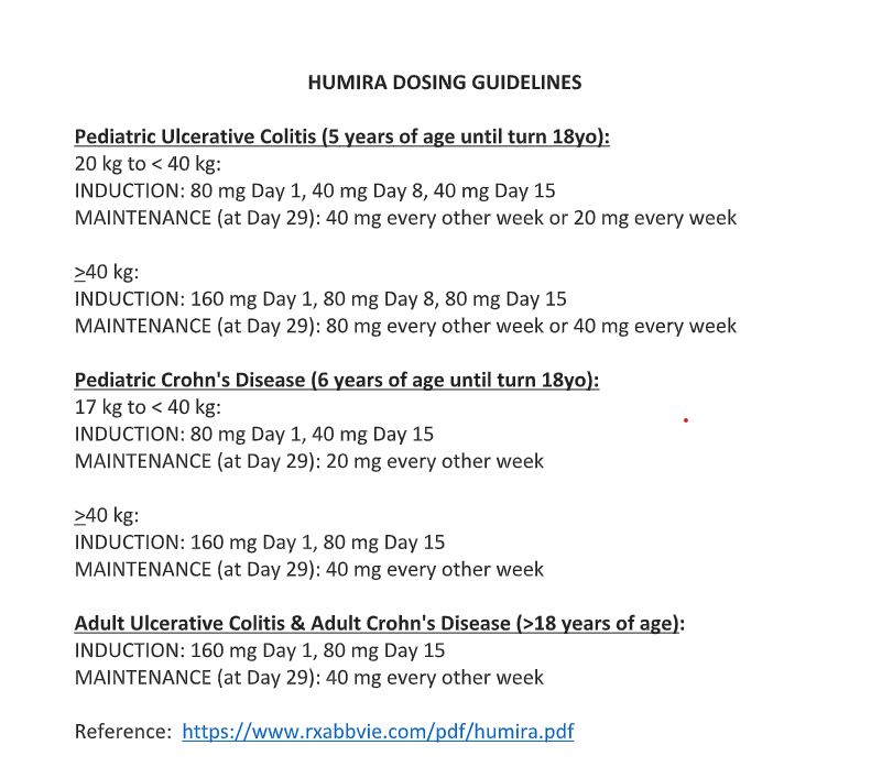 Also, Humira (adalimumab) is now FDA-approved for children as young as 5 years with ulcerative colitis: FDA Approves Adalimumab as Treatment for Children With Ulcerative Colitis (2/25/21). “This approval is based on results from the phase 3, randomized, double-blind, multicenter ENVISION I (NCT02065557) study.” Abbvie has now updated their Humira dosing recommendations (Reference: https://www.rxabbvie.com/pdf/humira.pdf). Thanks to Clair Talmadge for this update.