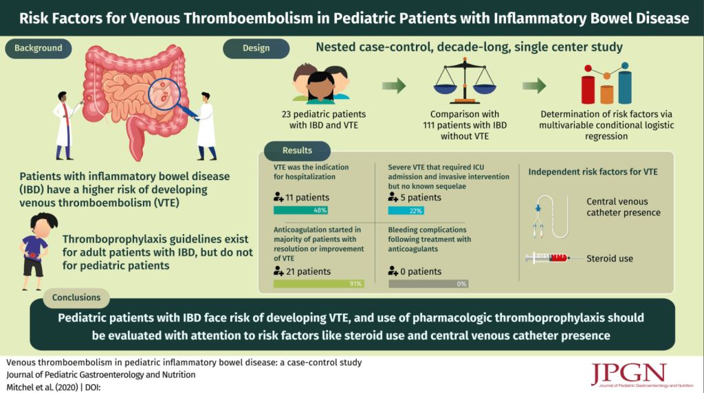 EB Mitchell et al. Journal of Pediatric Gastroenterology and Nutrition. 72(5):742-747, May 2021.Venous Thromboembolism in Pediatric Inflammatory Bowel Disease: A Case-Control Study