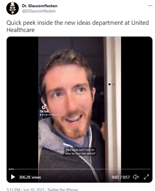 Insurance ED Coverage and Satire Posted on June 11, 2021 by gutsandgrowth Link to this video: “Quick Peek Inside the New Ideas Department at United Healthcare“ Share this: Click to email a link to a friend (Opens in new window) Email Click to share on X (Opens in new window) X Click to share on Facebook (Opens in new window) Facebook Like Loading... Related